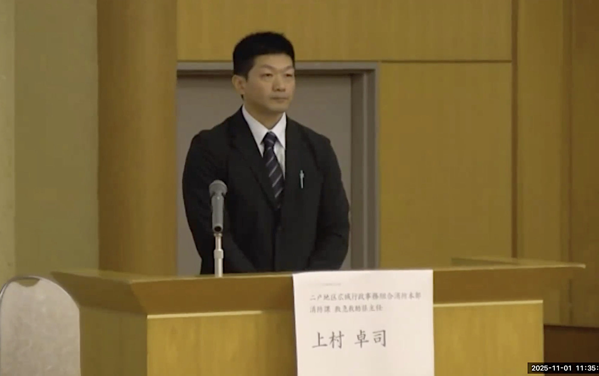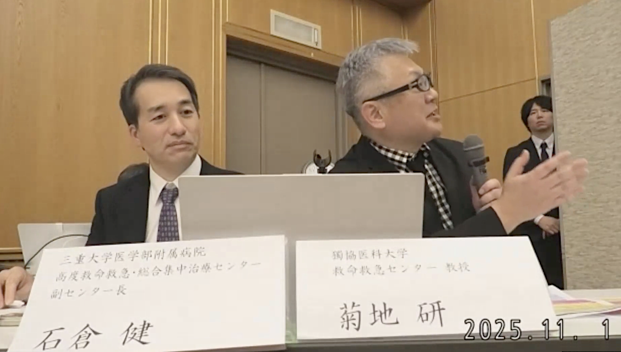午後の部では、市立大津市民病院の谷口先生より、JRC蘇生ガイドライン2025改訂のポイントを簡潔かつ分かりやすくご解説いただき、大変勉強になりました。また、招待講演では大分赤十字病院の油布邦夫先生より、コロナ禍においても心電図伝送がDTBT短縮に寄与することをご教示いただきました。一般演題では、岩手県外からも多数のご発表をいただきました。津市消防からはドクターヘリとの連携により心電図伝送が奏功した症例、栃木消防からは複数機器の使用感の比較アンケート結果についてご報告いただきました。総合討論では、全ての発表者の先生方にご登壇いただき、「救急隊の心理的安全性」をテーマに熱い議論が交わされました。詳細は、ぜひ後日公開される映像でご覧ください。