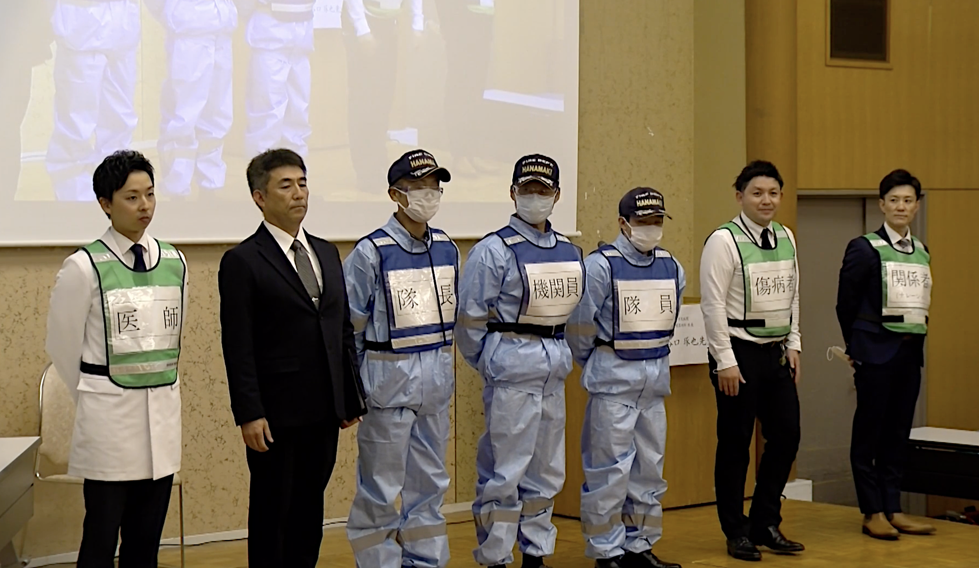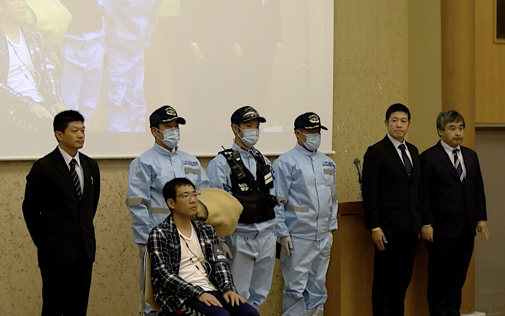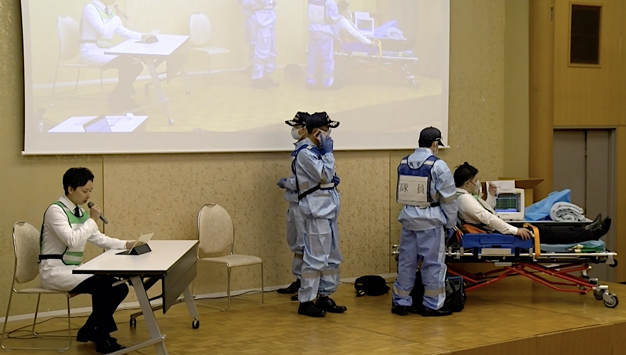 救急隊の方々と機器メーカーでチームを組み、 制限時間内で伝送の技術や正確性を競います