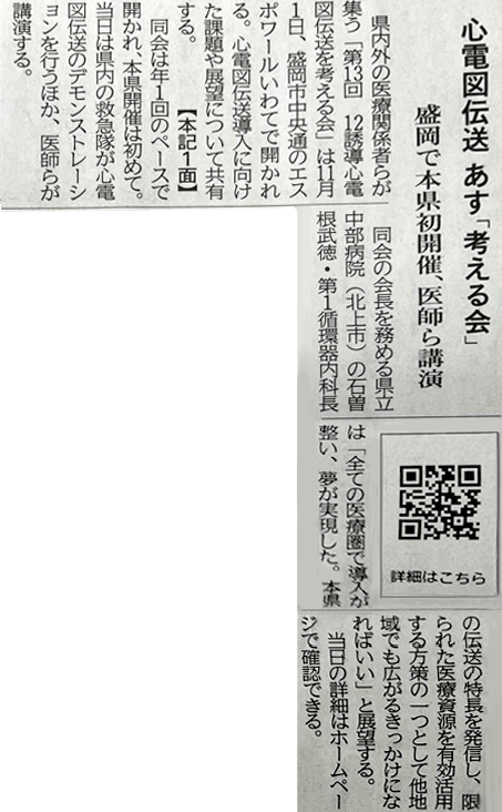 人口減少、医師不足、広大な面積をカバーしなければならないといった課題は、岩手県に限らず、多くの地域が直面している問題ではないでしょうか。本会では、12誘導心電図伝送の導入に向けた課題や導入後の発展について、皆様と熱く議論を交わし、各地域の取り組みに少しでも貢献できる場となることを願っています。